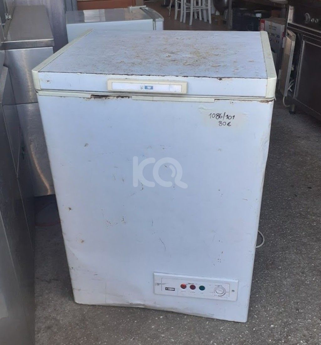 Μεταχειρισμένος καταψύκτης μπαούλο (βούτα), λευκός. Με ρυθμιζόμενο θερμοστάτη και επένδυση αλουμινίου. Διαστάσεις: 62x55x87 εκ. Τιμή: 80€/τμχ. Η τιμή δεν περιλαμβάνει ΦΠΑ 24% και μεταφορικά