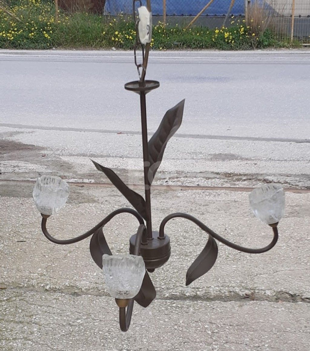 Μεταχειρισμένο πολύφωτο. Με μεταλλικό σκελετό σε μπρονζέ χρώμα με τρία γυάλινα καπέλα. Σε καλή κατάσταση. Τιμή: 15€/τμχ. Η τιμή δεν περιλαμβάνει φπα 24% και μεταφορικά