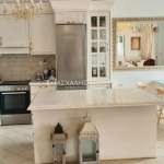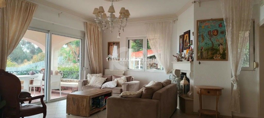 Renovated, furnished and electrically equipped, 4-room apartment – maisonette, 1st floor 2 levels, 130 sqm. It has a single living room – kitchen, 3 bedrooms, bathroom with bathtub, w/c, autonomous heating, fireplace, air conditioning, solar water heater, autonomous PPC clock, shared pool, shared gym, 2 balconies, storage room, internet, garden, courtyard, terrace, barbecue area, parking. Small pets accepted. No utilities. Rent price 1250 euros.