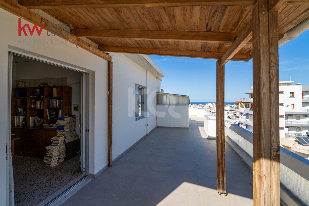 Στην καταξιωμένη και ιδιαίτερα προνομιακή περιοχή του Μασταμπά στο Ηράκλειο Κρήτης, ξεχωρίζει αυτό το εντυπωσιακό ρετιρέ 5ου και 6ου ορόφου, μια σπάνια κατοικία που συνδυάζει άνεση, κύρος και ανεμπόδιστη θέα στη θάλασσα από το ανώτερο επίπεδο. Πρόκειται για ακίνητο κατασκευής 1980 με διαχρονικό χαρακτήρα, που αναπτύσσεται σε δύο επίπεδα συνολικής επιφάνειας 155 τ.μ., προσφέροντας ιδανικό διαχωρισμό μεταξύ χώρων καθημερινής διαβίωσης και ιδιωτικότητας.