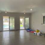 Στο ισόγειο συναντάμε μία άνετη και λειτουργική κουζίνα, ευρύχωρο σαλόνι, μπάνιο με ντουζιέρα και πρακτικό αποθηκευτικό χώρο κάτω από τη σκάλα. Οι μεγάλες μπαλκονόπορτες του σαλονιού οδηγούν απευθείας στη βεράντα, τον ιδιωτικό κήπο και την πισίνα, δημιουργώντας έναν ιδανικό χώρο για χαλάρωση και φιλοξενία.