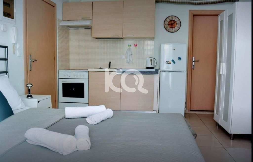 γκαρσονιέρα, studio, ανακαινισμένο, 25τμ, 1ου ορόφου, 1 μπάνιο, προσόψεως, ανελκυστήρας,άνετη μεγάλη βεράντα, δομημένη καλωδίωση, ενιαία σαλόνι/κουζίνα, με έπιπλα, ηλ. εξοπλισμένη, ηλιακός θερμοσίφωνας, κλιματισμός.
