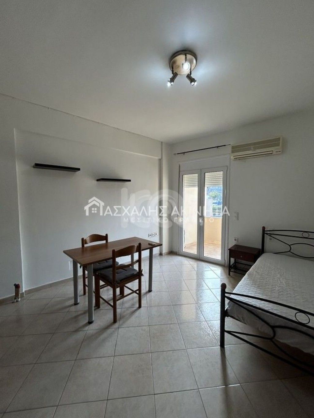Furnished and electrically equipped 1st floor studio apartment 30 sqm. It has a single living room-kitchen-n/d, 1 bathroom, air conditioning, electric water heater, PPC meter and independent water clock, balcony. No pets. Rent price 250 euros (with drainage costs and utilities).