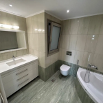 νεόδμητο, (1ης ενοικίασης), γωνιακό, προσόψεως, αυτόνομο 4αρι οροφοδιαμέρισμα επιφάνειας 150 τ.μ. 1ου ορόφου, σε μικρό κτίριο με τρία οροφοδιαμέρισματα συνολικά. Παρέχει αυτόνομη αποθήκη 30 τ.μ. στο υπόγειο και μια θέση στάθμευσης στην πυλωτή του κτηρίου. Αποτελείται από πολύ μεγάλο ενιαίο σαλόνι-κουζίνα-τραπεζαρία με τζάκι, εντοιχισμένη ηλεκτρική κουζίνα, κεραμική εστία και μεγάλη βεράντα, 3 μεγάλα υπνοδωμάτια με εντοιχισμένες ντουλάπες και το ένα έχει βεστιάριο, βεράντα και μπαλκόνια, ένα μεγάλο λουτρό με γωνιακή μπανιερά, ένα μπάνιο επισκεπτών με ντουζιέρα.