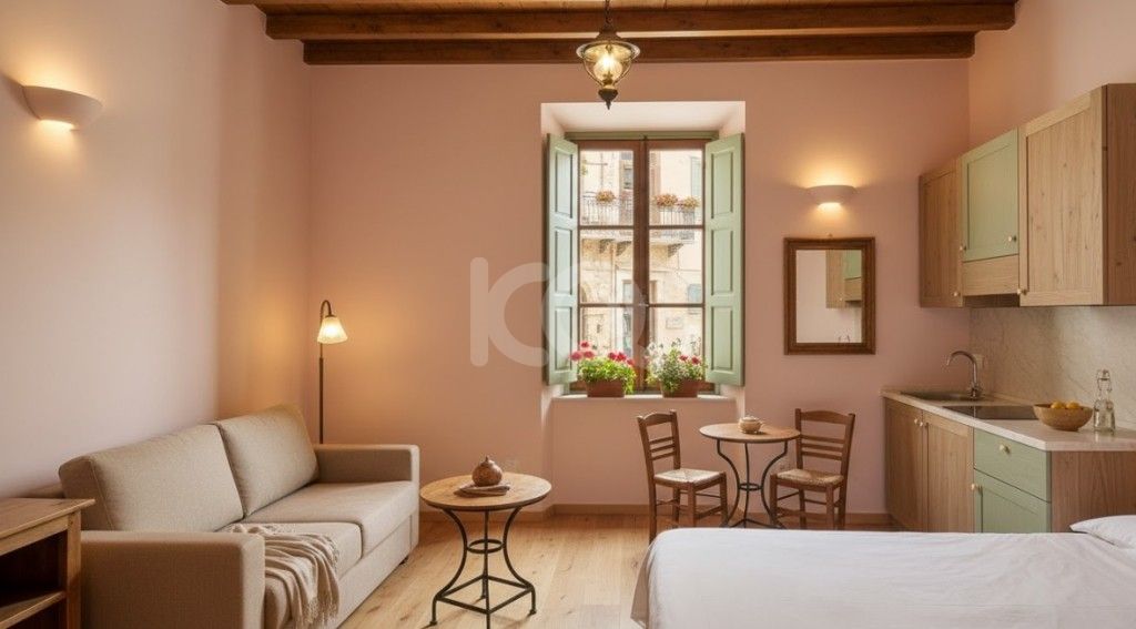 Το συγκρότημα αποτελείται από 4 ανεξάρτητα studios των 38 τ.μ. + Αποθήκη στο υπόγειο για το καθ ένα, ιδανικά διαμορφωμένα για βραχυχρόνια μίσθωση, χωμένα ανάμεσα στα γοητευτικά, πέτρινα σοκάκια της Παλιάς Πόλης του Ηρακλείου — μιας γειτονιάς που δεν κοιμάται ποτέ και δεν σταματά να εμπνέει.