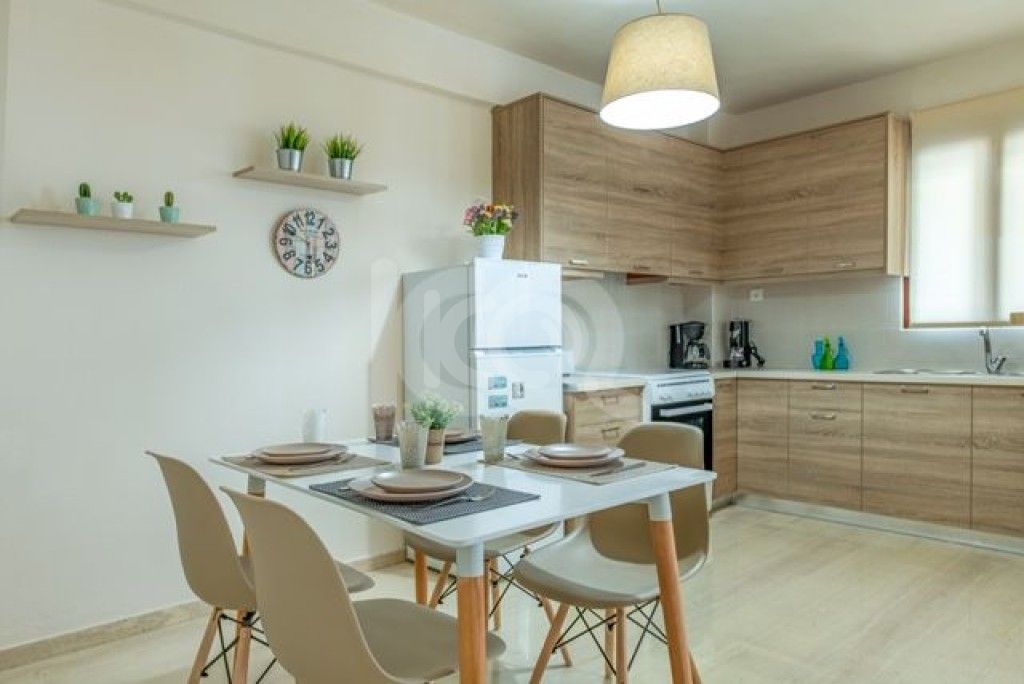 Είναι διαμπερές και φωτεινό, ενώ η διαρρύθμισή του αποτελείται από έναν ευρύχωρο ενιαίο χώρο σαλονιού - κουζίνας, 2 άνετα υπνοδωμάτια και 1 μπάνιο. Προσφέρεται πλήρως επιπλωμένο και εξοπλισμένο με τις περισσότερες ηλεκτρικές συσκευές (σημείωση: δεν διατίθεται πλυντήριο ρούχων).