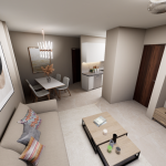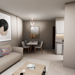 Διαρρύθμιση: 1 άνετο υπνοδωμάτιο, 1 πολυτελές μπάνιο και ενιαίος χώρος σαλόνι-κουζίνα.