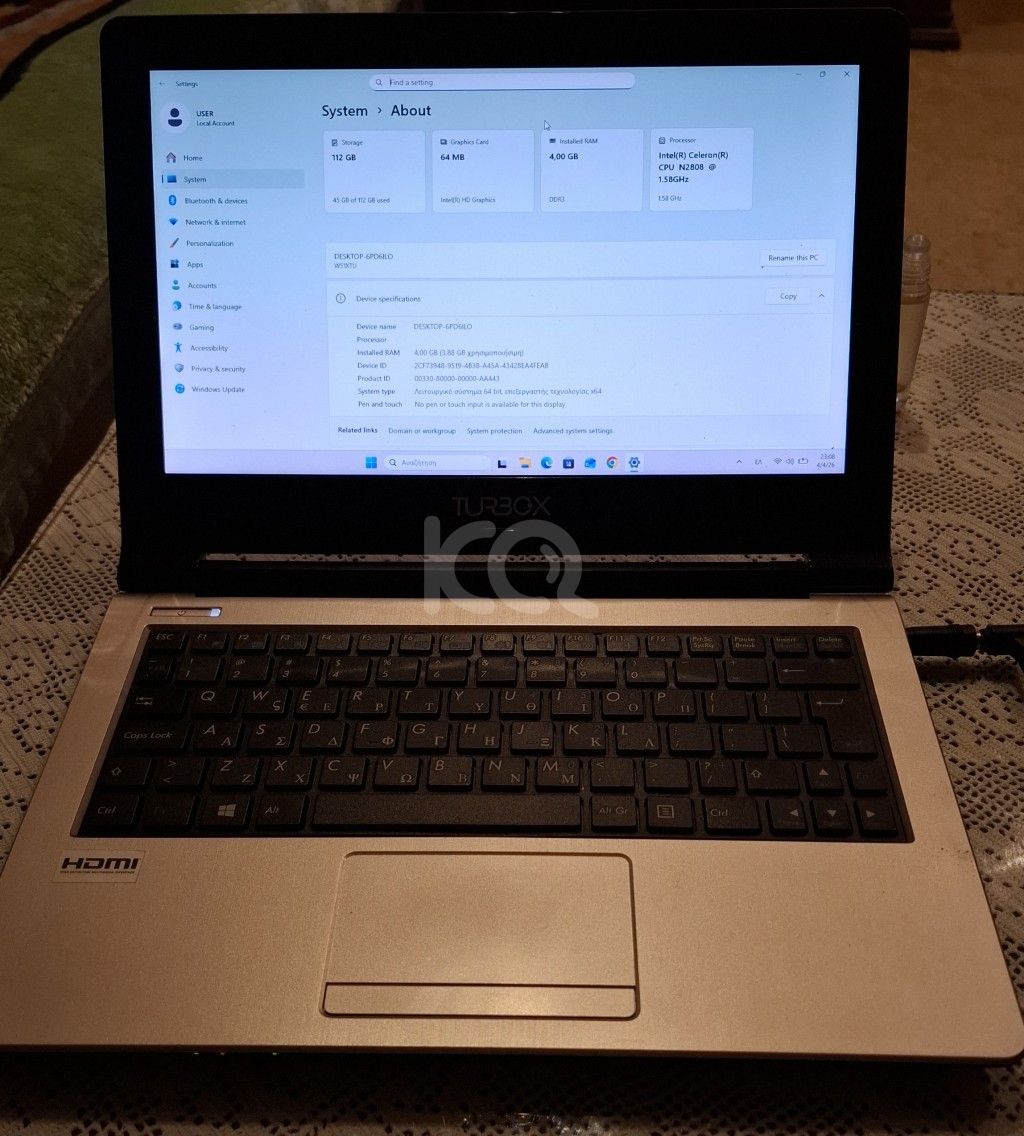 intel celeron bust frequency 2.25 ghz, οθόνη 13΄' , 4gb ram , ssd 128gb, windows 11 pro gr μαρτίου 2026. office 2024,