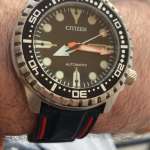 Ανδρικό ρολόι της εταιρίας Citizen, μεγάλου μεγέθους Διαθέτει αυτόματο μηχανισμό που επιτρέπει να αποφεύγεται το χειροκίνητο κούρδισμα, καθώς αυτό επιτυγχάνεται με την κίνηση του χεριού περιστρέφοντας έναν ρότορα ο οποίος συσπειρώνει το ελατήριο.