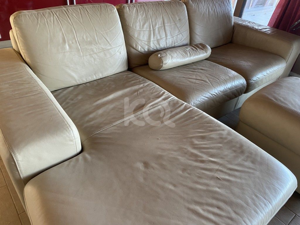 δερμάτινος με σκαμπό με αποθηκευτικό χώρο 61*62. Διαστάσεις καναπέ 237 *149 * 88.