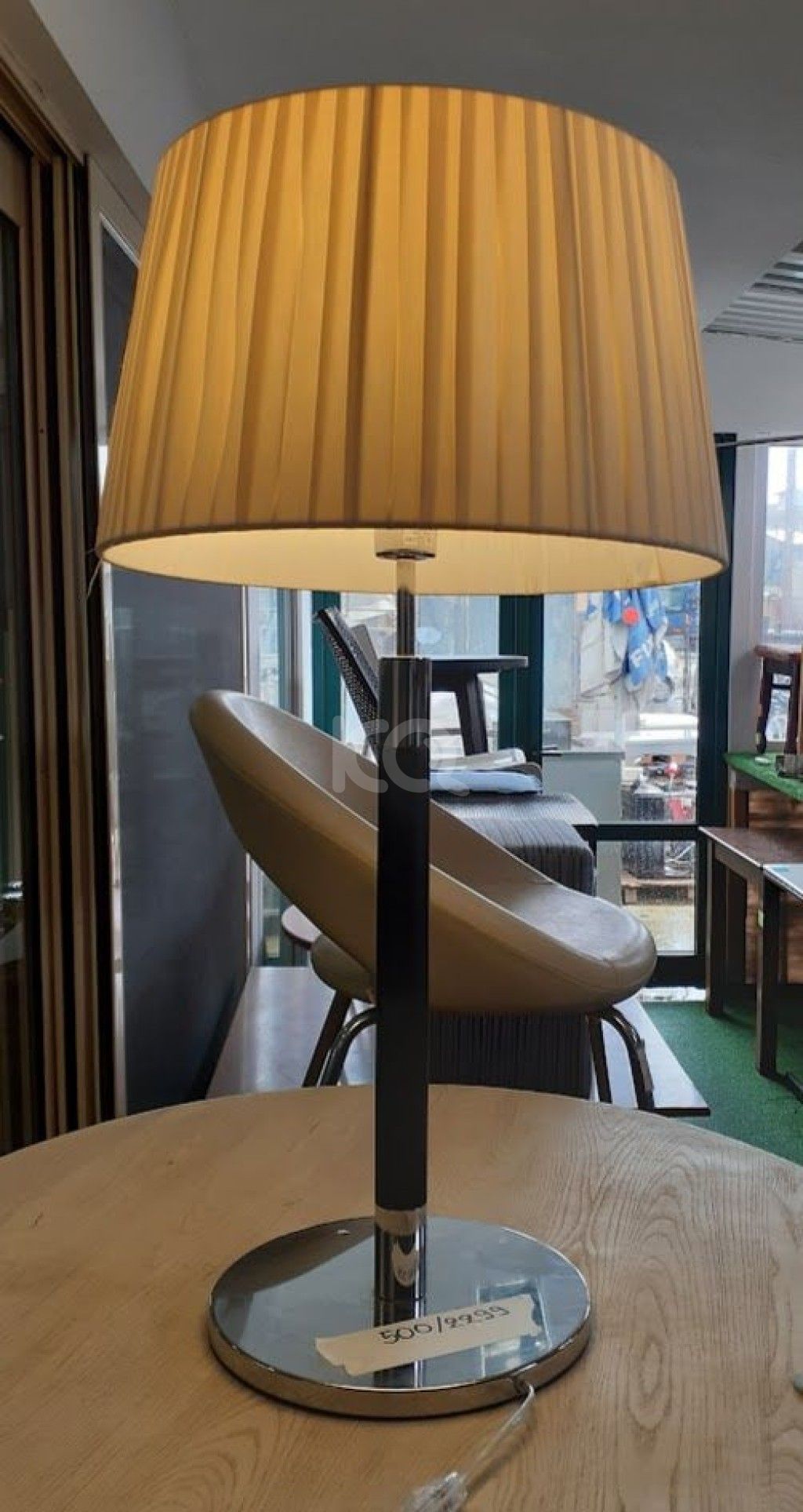 Μεταχειρισμένο επιτραπέζιο φωτιστικό με ανοξείδωτη βάση και υφασμάτινο καπέλο σε χρώμα μπεζ. Σε άριστη κατάσταση. Τιμή: 50€/τμχ. Η τιμή δεν περιλαμβάνει ΦΠΑ 24% και μεταφορικά