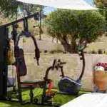 Πίσω εξωτερική αυλή με όργανα γυμναστικής .