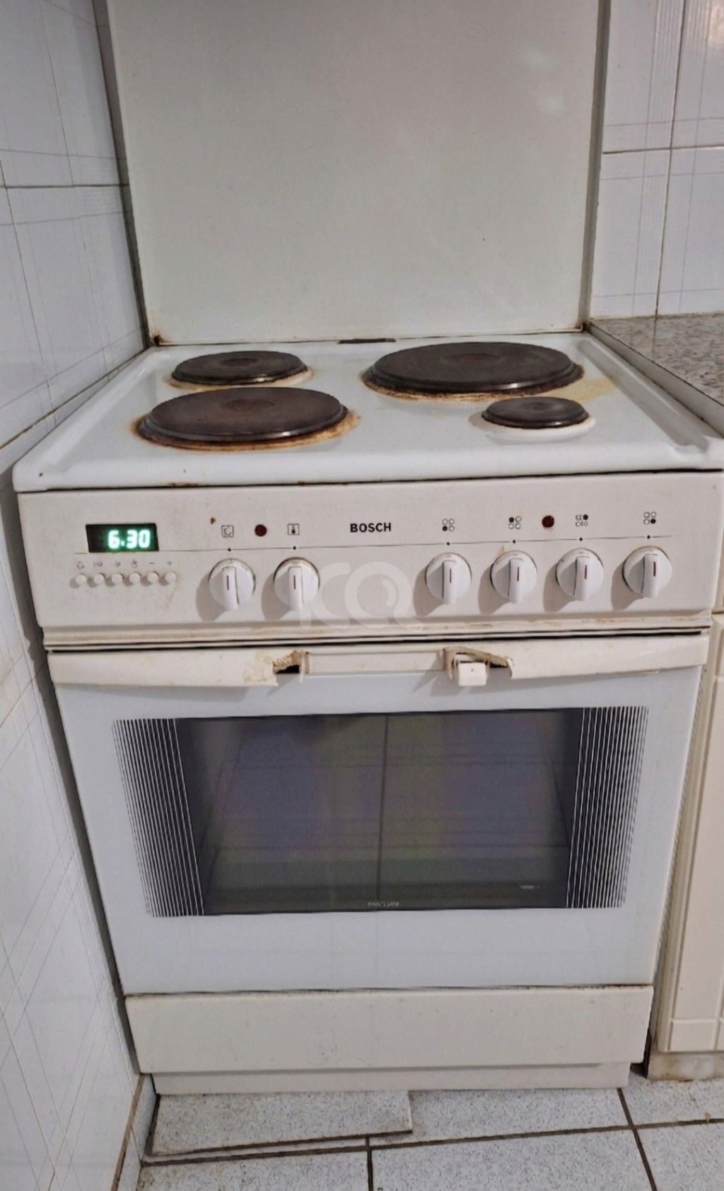Πωλείται κουζίνα BOSCH, σε λευκό χρώμα. Η συσκευή είναι λειτουργική με τις εξής επισημάνσεις: