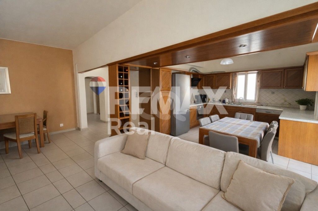 Πρόκειται για μία κατοικία με άνετους χώρους και σωστή εσωτερική οργάνωση, που μπορεί να καλύψει ιδανικά τις ανάγκες μιας οικογένειας ή όσων αναζητούν μια ευρύχωρη κατοικία σε εξαιρετική τοποθεσία. Η είσοδος του διαμερίσματος οδηγεί σε έναν άνετο χώρο υποδοχής, από όπου αναπτύσσεται το υπόλοιπο σπίτι. Ο βασικός χώρος διαβίωσης είναι μεγάλος και φωτεινός, με κουζίνα, τραπεζαρία και καθιστικό σε ενιαία διάταξη, προσφέροντας λειτουργικότητα και άνεση στην καθημερινότητα. Το τζάκι στο σαλόνι ενισχύει τον χαρακτήρα του χώρου, ενώ η επίσκεψη στο μπαλκόνι χαρίζει γαλήνη με όμορφη θέα προς τη θάλασσα.